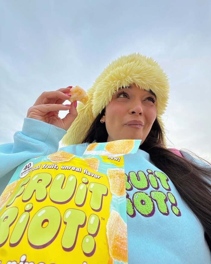 Fruit Riot, a sour candy brand under Beyond Better Foods, sports a punchy wordmark set in Ohno Softie by OH no Type Co. – a fitting choice for a name that practically demands a squishy, and energetic treatment. With its bulbous forms, exaggerated curves, and lively rhythm, Ohno Softie captures the sensory overload of a sour candy experience.