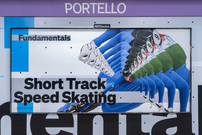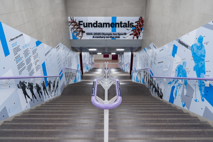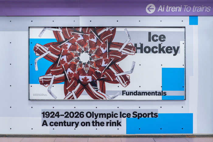 Fundamentals was developed for the Olympic Winter Games 2026 in Milan and Cortina. The installation highlights the four disciplines hosted in Milan – ice hockey, figure skating, speed skating, and short track speed skating – bringing sport and art together.