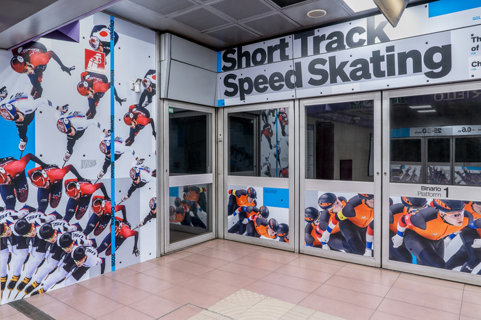 Site-specific installation by Tomo Tomo, commissioned by the Olympic Museum in Lausanne and YesMilano in the Metro 5 station of Portello, Milan.