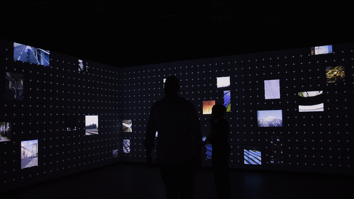 Designed by Stefan Kainbacher and his team together with Studio Freude, the installation combines interactive storytelling, motion tracking and sound to visualize possible futures. The motion design is by Tobias Müller of MDMR.