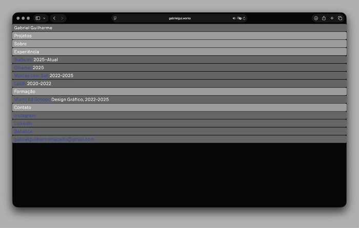 Gabriel Guilherme is a São Paulo-based multidisciplinary designer whose practice balances aesthetics and intention across graphic design, motion, and UI. Currently a designer at Estúdio Biabum, his experience spans collaborations with advertising agencies and branding consultancies alongside his work as an independent designer on commercial and personal projects.