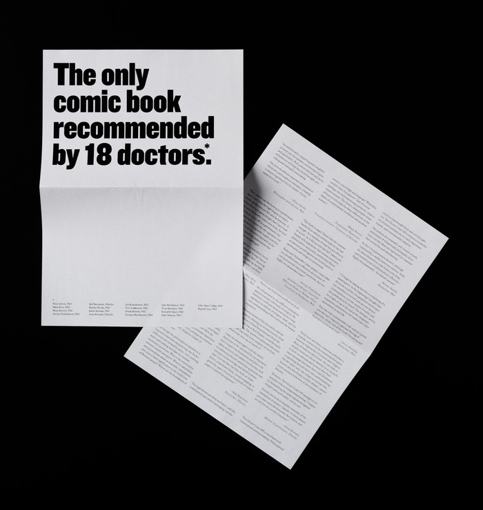 Thus we chose to go all out with strong typography, witty copywriting, striking photography, and a strict black and white color scheme. Our aim was to make an impression, using a blend of bold graphics and humor. Our goal — to startle people, amuse them, and make them think about the topics presented without providing a definite answer one way or the other.