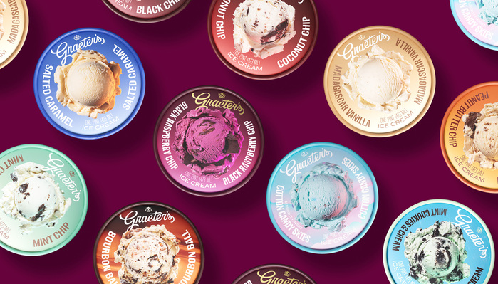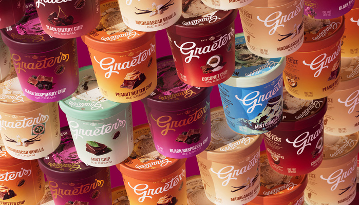 Matria, Klub 11 and Klub 08 make the typographic palette of this rebrand for Graeter’s, a fifth-generation family-owned, regional ice cream chain based in Cincinnati, Ohio, and one of the few (if not the only remaining) small-batch ice cream maker using the French Pot method.