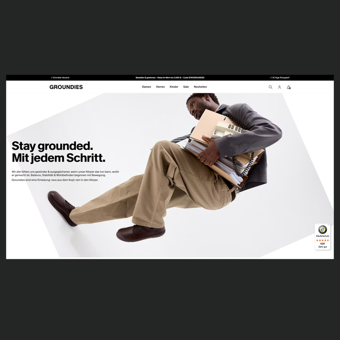 Groundies was founded in 2019 in the Black Forest. Since the very beginning, the company’s mission has remained unchanged: to combine the many benefits of natural walking with modern design and high-quality craftsmanship. Today, Groundies are worn in over 150 countries.