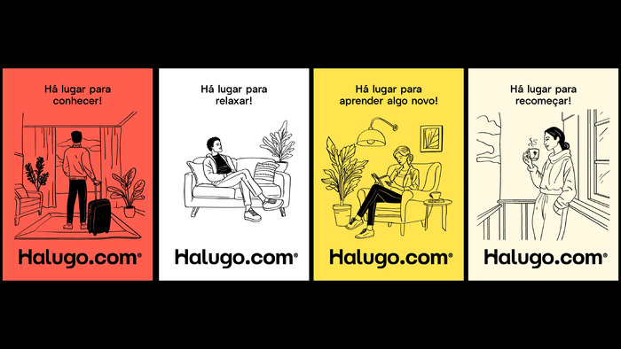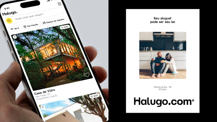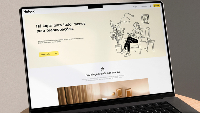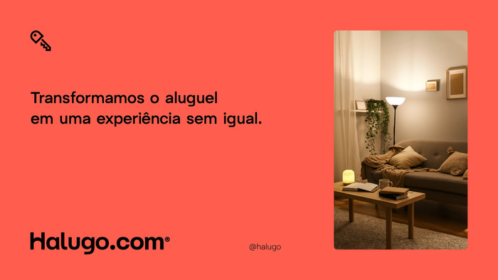 Halugo is a Brazilian PropTech company that bridges the gap between traditional real estate and modern hospitality. Their current visual identity was developed by Estúdio Kimura circa 2024–2025.