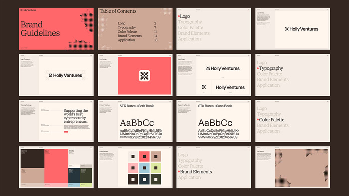 STK Bureau Serif and STK Bureau Sans from Smuss Type Kiosk are the brand typefaces of Holly Ventures, with Selecta by Maxitype used for the company’s logo. Their identity was designed by J. D. Reeves: