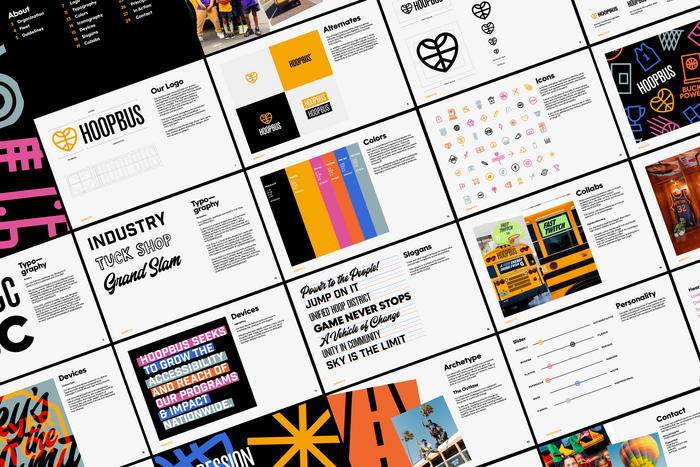 Ben Loiz Studio partnered with Hoopbus to create an identity system that reflects their mission and energy, translating seamlessly across their global fleet. From logo and color palette to social media and full-scale bus designs, the identity captures the heart of Hoopbus: love, peace, and basketball.