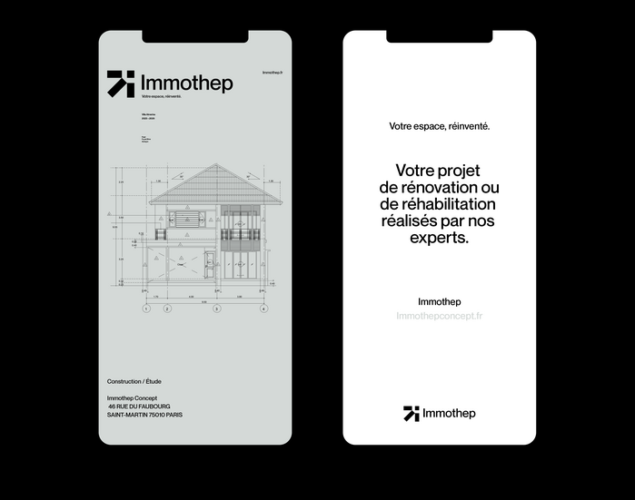 The final identity positions Immothep Concept as a trusted and distinctive name in the Parisian high-end renovation market. Every visual element, from the logo to the interface design, embodies the brand’s promise: “Your space, reimagined.”