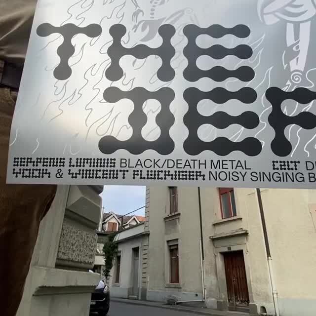 The F4 poster was printed in a black only version, and another 50 × 70 cm version is printed in offset silver and black with a matte varnish by Cric Print in Fribourg. The concert was organised by Maxime Barras & Maxime Papaux, under the name Maxi-Maxi.