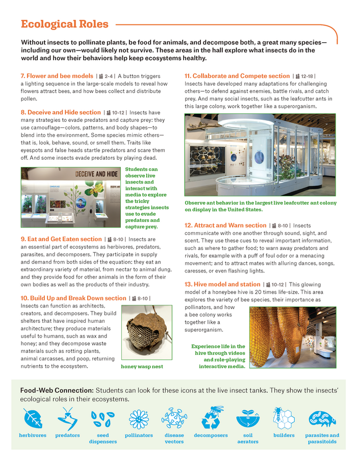 Rift and Aglet Slab, both monolinear with round stroke endings, support the approachably educational science center. The condensed proportions of Rift lend it toward titles, while Aglet Slab performs in exhibition-scale paragraphs. Atlas Grotesk is used for smaller-scale body copy, such as in the Insectarium Educator's Guide.