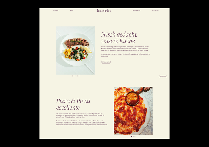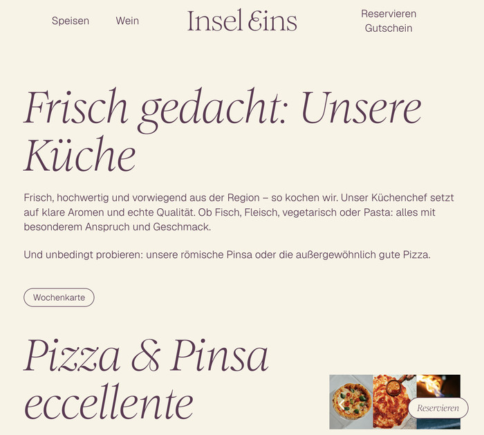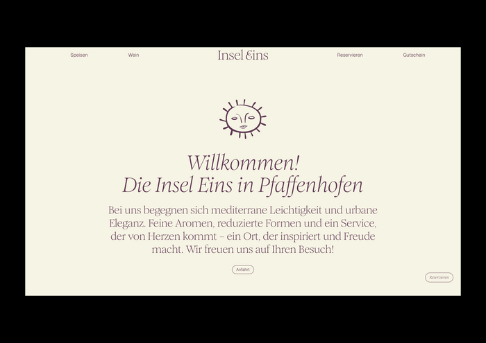 Insel Eins is a restaurant located in Pfaffenhofen an der Ilm, Germany, that serves Mediterranean and European cuisine. The logo and the website are set in Margot Lévêque’s Romie Italic and Regular, paired with Geist Sans.