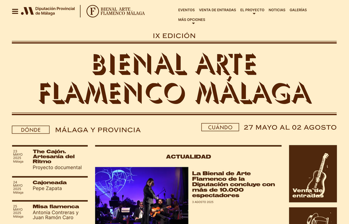 The Bienal de Arte Flamenco de Málaga is a cultural gathering that celebrates flamenco as an artistic expression and living heritage. A space for exchange and visibility around cante singing, dance, and guitar playing, it highlights flamenco tradition and its connection to the city, bringing together artists, audiences, and diverse contexts around a deeply rooted culture. It took place in Málaga from May 27 to August 2, 2025.