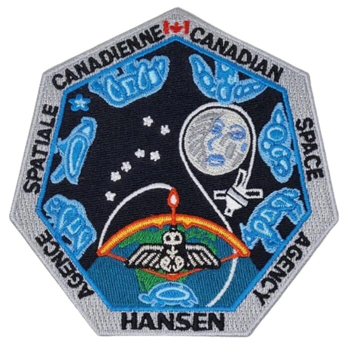 Jeremy Hansen, the Canadian astronaut, wore a special mission patch created specifically for him by the Canadian Space Agency. It was designed by Anishinaabe artist Henry Guimond of the Turtle Lodge. Its heptagonal shape and the animals shown on it reference to the Seven Sacred Laws, a traditional First Nations teaching that emphasizes Respect, Love, Courage, Honesty, Wisdom, Humility, and Truth. The agency’s webpage and press video go into greater detail about the symbolism of each element on the patch.