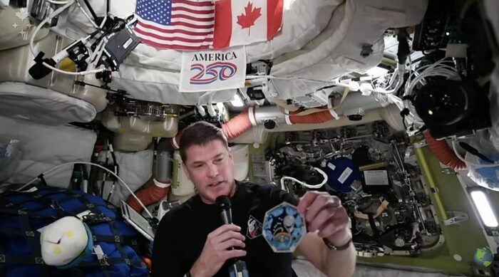 Jeremy Hansen sharing the patch while in space, during a Space-to-earth connection event: