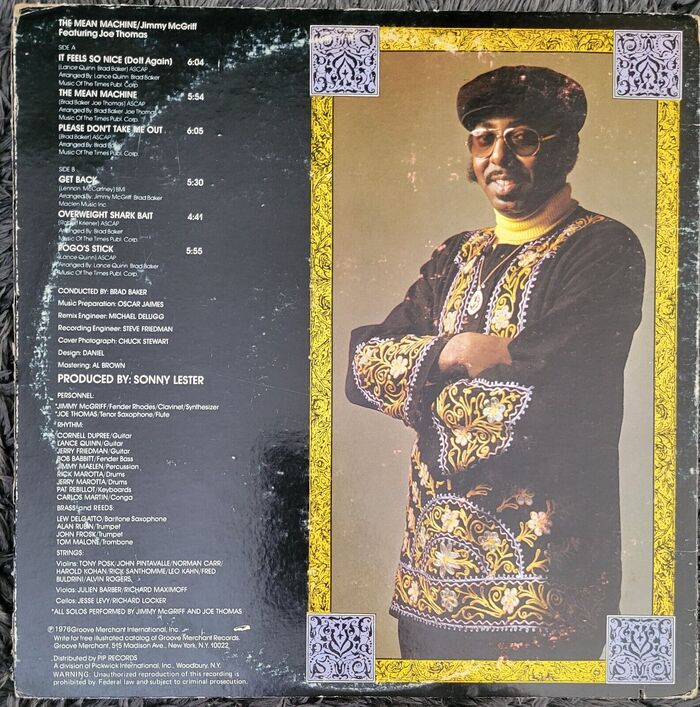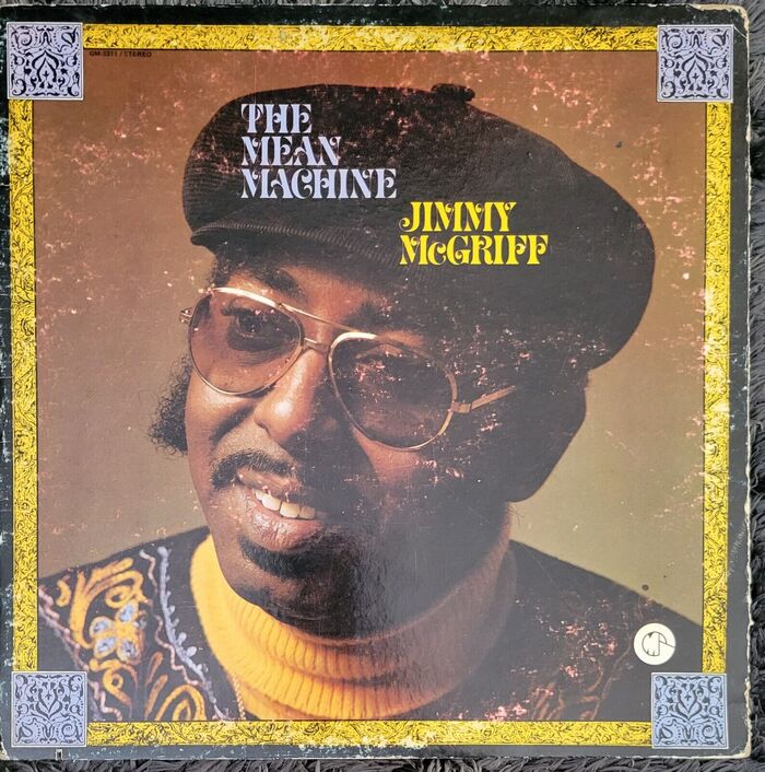 A fine Use of all-caps West Nouveau Didot for the cover of The Mean Machine, an album by jazz organist Jimmy McGriff (1936–2008) released on Groove Merchant in 1976. Printed in pale violet and yellow, the curly letters nicely echo the ornamentation on the musician’s garment.