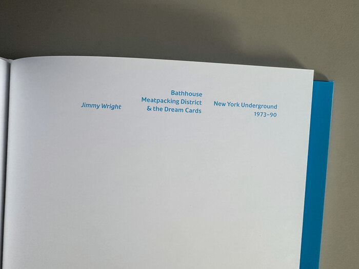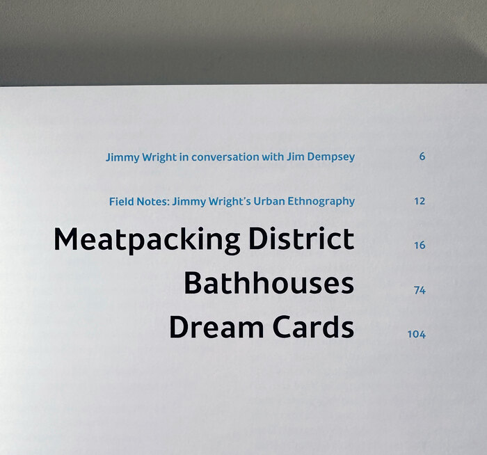 Bathhouse, Meatpacking District and the Dream Cards. New York Underground 1973–90 was a solo exhibition by Jimmy Wright, held June 3–July 15, 2016, at Corbett vs Dempsey gallery, Chicago. The exhibition catalog has 136 pages and measures 9½ × 12½ in.