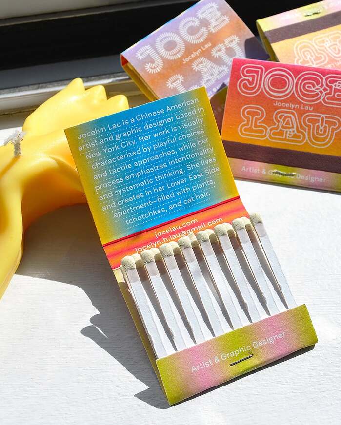 Jocelyn Lau is a Chinese American artist and graphic designer based in New York City. Her work is visually characterized by playful choices and tactile approaches, while her process emphasizes intentionality and systematic thinking. She designed a visual identity for herself, featuring a mix of Luma Reverse and Luma Sans. Her new business card matchbooks embrace Luma Reverse’s funky letterforms by playing with graphic strokes to create a cool visual texture. Luma Sans, with its matching letterform proportions to Luma Reverse, is used as the body copy on the matchbooks and her website.