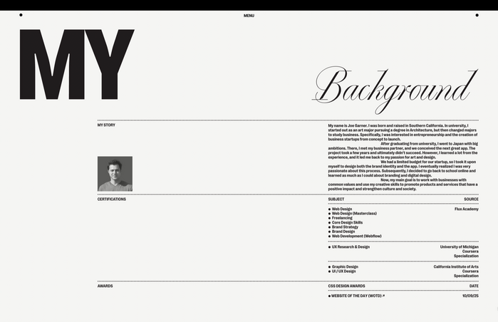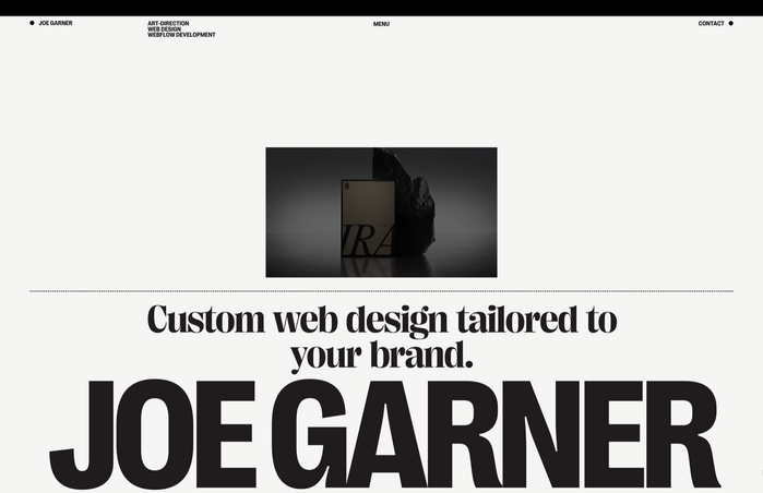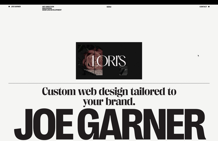 Design for the portfolio website of Joe Garner, a multidisciplinary web designer from California.