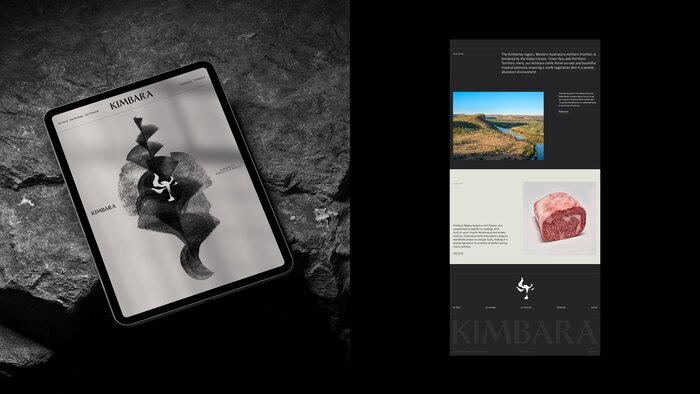 The brand is built from contrast. Japanese bloodlines, raised in the wilds of the Kimberley. Refined craft, grounded in rugged country. Kimbara’s identity draws directly from this terrain – a mineral-rich palette inspired by the region’s iconic black rock formations. At its heart is the Wagyu itself, introduced through a bespoke logomark based on the Japanese character for ‘GYU’ (cow).
