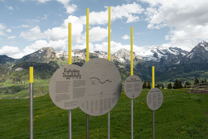 Studio Marcus Kraft accompanied the rebranding process for three years and developed a visual identity that conveys the complexity of the Klangwelt Toggenburg. The centerpiece is a tailor-made dynamic corporate typeface that can be modularly expanded using recurring letter elements – creating a typographic resonance inspired by overtones, sound frequencies and the mountains and valleys of the alpine landscape.