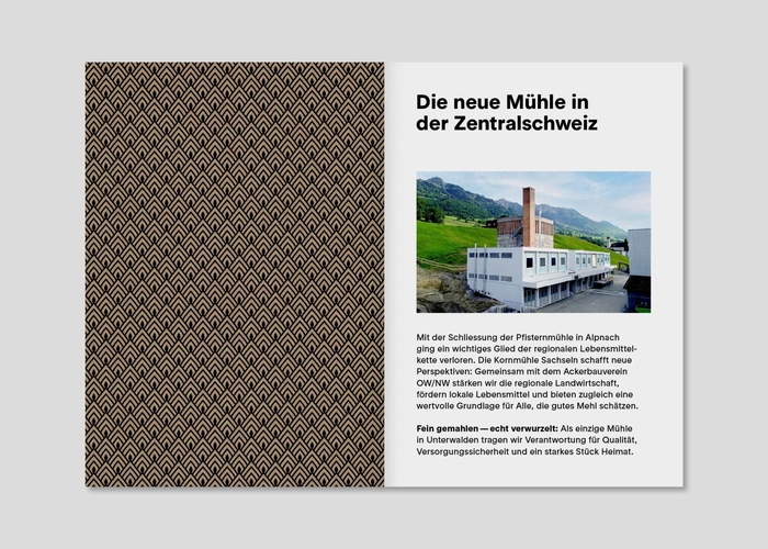 RT Rondelle in use by Studio Anderhalden for the identity, packaging and website of Kornmühle Sachseln, a regional grain mill from Unterwalden creating prospects for sustainable agriculture in Central Switzerland.