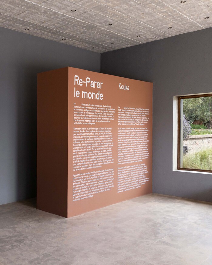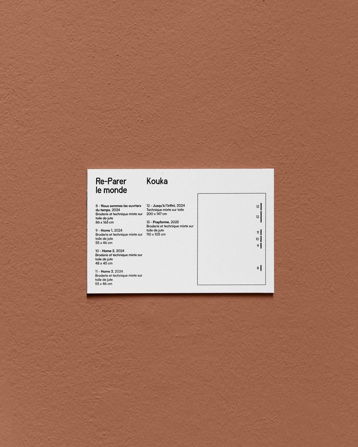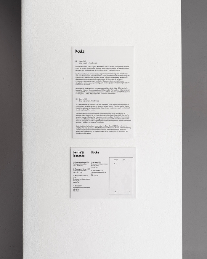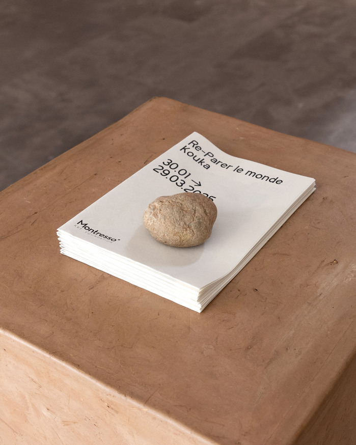 Exhibition identity for Re-parer le monde by Kouka Ntadi, presented at the Galerie des Résidents, Montresso Art Foundation, in February 2025, as part of the 1–54 Marrakech Art Fair.