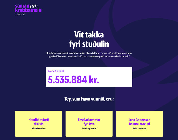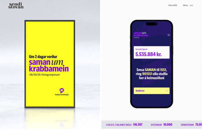 The national fundraising campaign “Saman um krabbamein” (“Together Against Cancer”) was one of the first applications of the updated look.