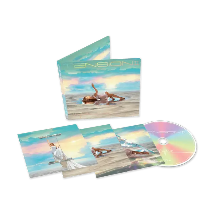 Tension is the sixteenth studio album by Australian singer Kylie Minogue. It was released on 22 September 2023 by BMG and Minogue’s company, Darenote. […] Tension II, a sequel album, was released on 18 October 2024, alongside a Tension Tour to support both releases beginning in February 2025. […] Studio Moross handled the album’s photoshoot and cover; Haris Nukem photographed it, and Aries Moross handled the creative direction.