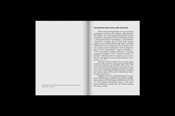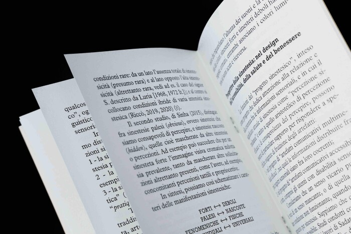 Volume 6 is titled La ricerca sulla sinestesia. Un contributo tra neuroscienze e design. This text retraces the main stages that have marked the research on synesthesia and detects two barely addressed issues: the history of synesthaesia and its future prospects. First, the role and historical importance of Italian scholars (physiologists, aestheticians, historians, linguists) in identifying the synaesthetic phenomenon will be outlined, given how they are too often left out from the scientific production. Second, some applicative prospects drawing from the neuroscientific knowledge on synesthesia in the field of design for content accessibility and the design for health and well-being will be further explored.