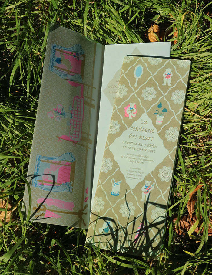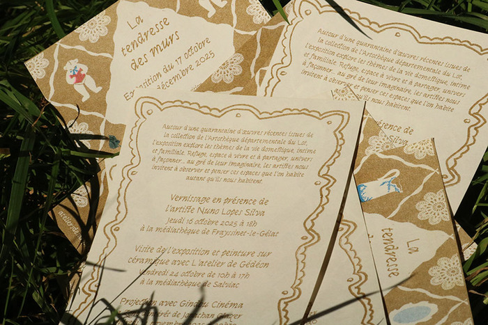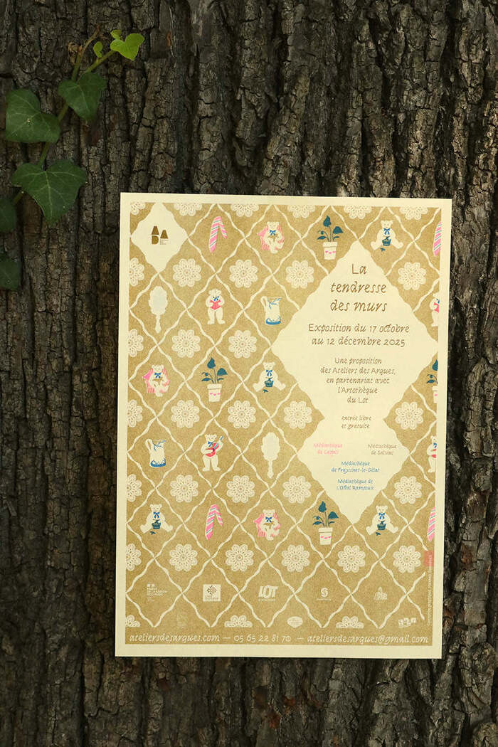 Visual communication for La tendresse des murs, the fall 2025 exhibition organized by Les Ateliers des Arques in the media libraries of the Cazals-Salviac Community of Municipalities in France.