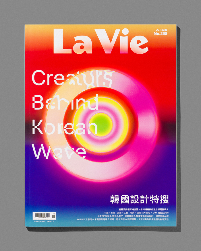 We designed the cover for the October issue of La Vie Magazine, a cultural publication based in Taiwan. The graphic concept interprets the energy and layered structure of Korean design through an expanded color spectrum and concentric waves inspired by traditional Korean colors. This special feature introduces creators from various fields—K-pop, film, fashion, crafts, and architecture—shedding light on the designers behind the Korean Wave. It also includes interviews and works by Everyday Practice and many other Korean creatives.