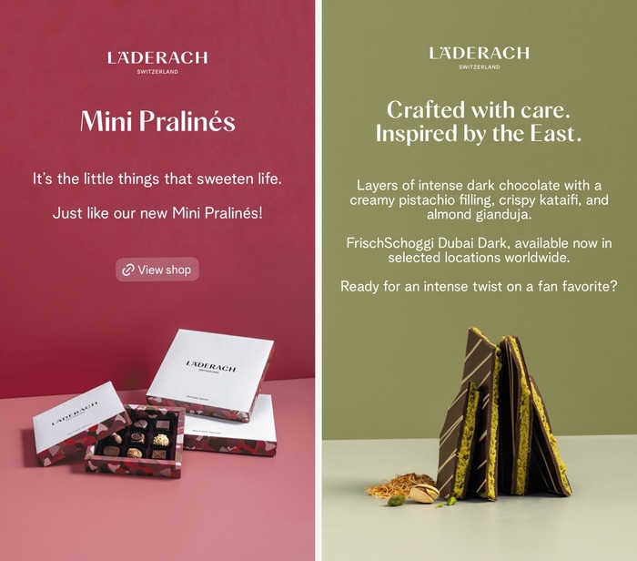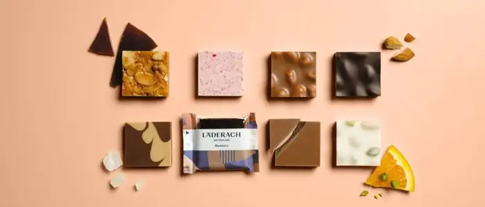 Albra Grotesk and Albra Sans by Rellence are used for the brand identity of Läderach across packaging and brand communication. The Swiss chocolate maker, founded in 1962, is known for its high-quality, bean-to-bar production carried out entirely in Switzerland. The family-run company offers a wide range of products, including its signature FrischSchoggi, pralines, and seasonal specialties.