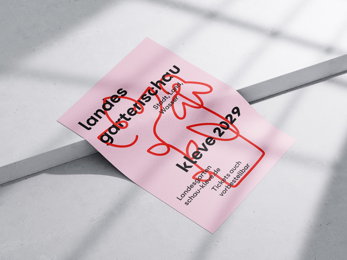 Design shapes the city and the way people experience it. The corporate identity for the Landesgartenschau Kleve 2029 goes beyond a purely visual system and creates a guiding “blue line” that continues to shape the city beyond the event itself. It not only celebrates the garden show, but also stands for connection and invites residents and visitors to explore the city.