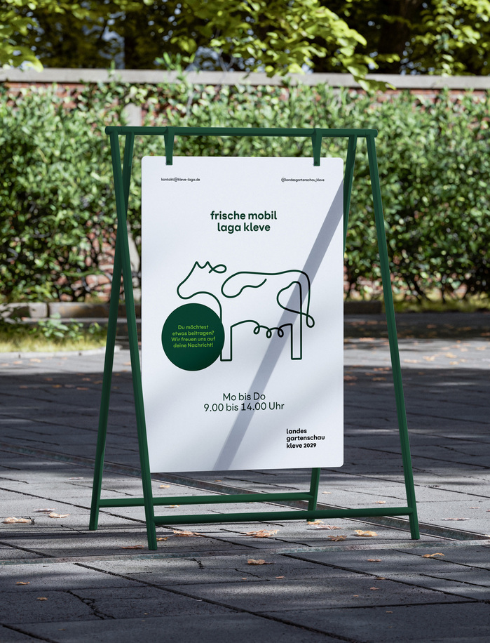 The result is a consistent corporate design that gives the Landesgartenschau Kleve 2029 a distinct character and guides visitors and residents through the city like a blue thread.
