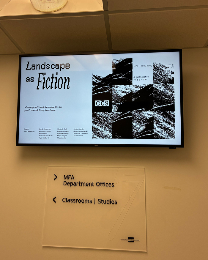 This poster was created to promote the exhibition Landscape as Fiction, which presented the outcomes of a semester-long course of the same name at the College for Creative Studies in Detroit. I participated in the course during my Erasmus exchange semester, contributing to a collective exploration of how landscapes can be interpreted, constructed, and reimagined as narrative and speculative spaces.