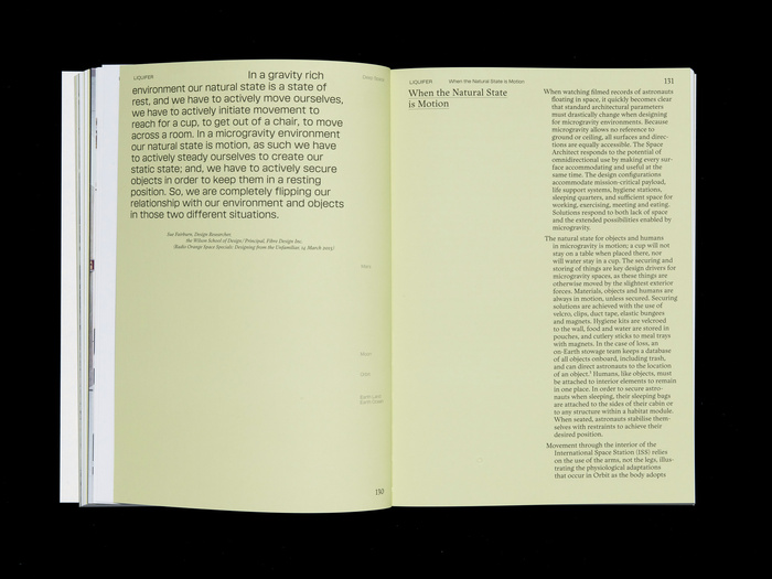 LIQUIFER. Living Beyond Earth – Architecture for Extreme Environments is the first book to present the practice’s groundbreaking work. It features 177 color and 62 b/w illustrations and was published by Park Books. It’s the first published book to use the typeface Micronova. The serif typeface is Lexik, likewise by Binnenland.