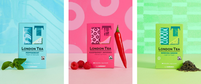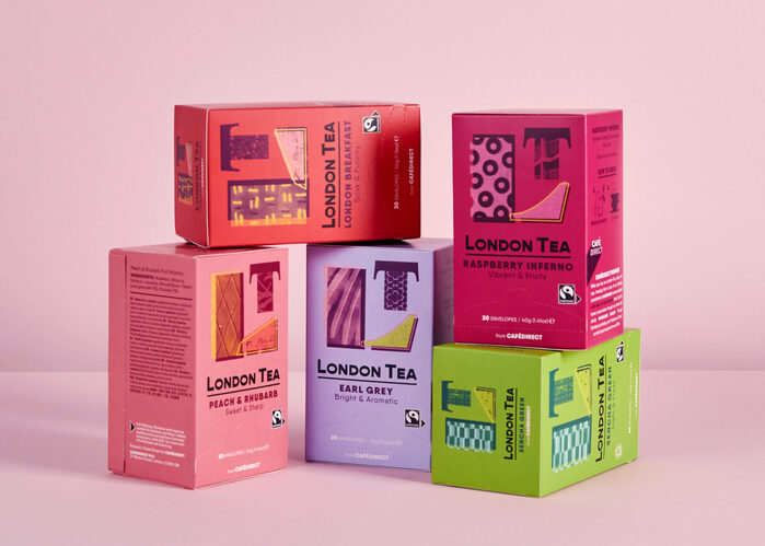 London-based studio Family (and friends) refreshed London Tea for Cafédirect with a playfully refined identity built around a hand-illustrated LT monogram. Bright, youthful colors distinguish the different flavors, while the typography remains simple and straightforward, letting the artwork take the spotlight.