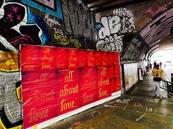 All About Love is BUILDHOLLYWOOD’s first major curatorial and artist commission that took over large-format billboards across Birmingham, Brighton, Bristol, Edinburgh, Glasgow and Manchester between April – December 2023. Curated by Zarina Rossheart, the project invited artists Helen Cammock, Asmaa Jama, Jasleen Kaur, Grace Ndiritu, Eve Stainton and Alberta Whittle to respond to the bell hooks’ seminal text through the lens of their artistic practices.