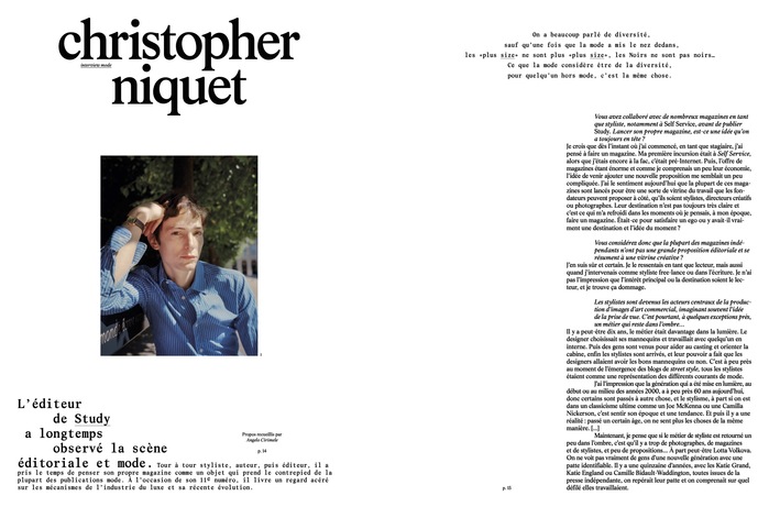 Published twice a year for each Paris Fashion Week, every issue combines two sections: a fashion section, entrusted to an invited figure from the industry (photographer, model, or stylist) who creates a dedicated visual story with their creative circle, and a press section, composed of commissioned essays that examine how fashion is seen, written, and mediated.