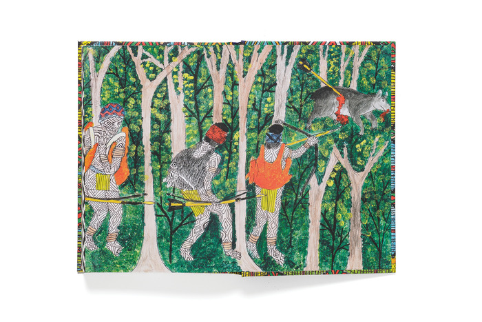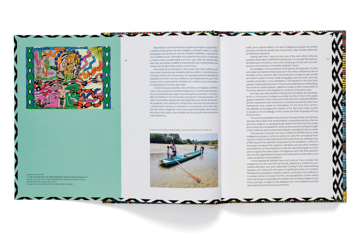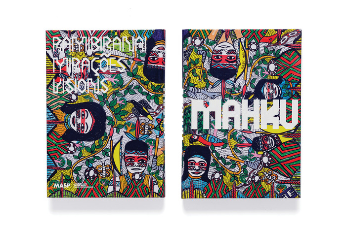 Published to accompany the 2023 exhibition at MASP (São Paulo Museum of Art), this book is the first monograph on the Huni Kuin Artists’ Movement (MAHKU). Founded in 2013, the group began its work by translating traditional songs of the Huni Kuin people into figurative drawings, developed in Indigenous teaching degree courses at the Federal University of Acre (UFAC). The group’s paintings derive both from these translations and recordings of songs, myths, and ancestral stories, as well as from the visual experiences generated by the nixi pae rituals—which involve the ingestion of ayahuasca and are referred to as mirações (“visions”), the title of the project.