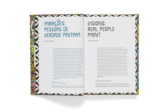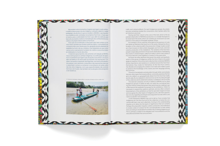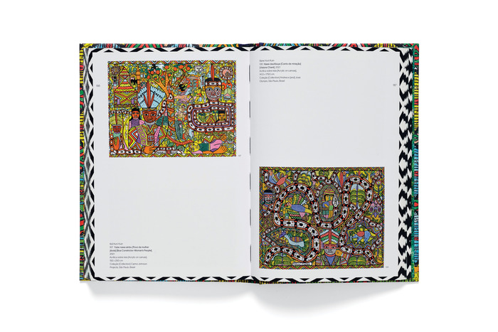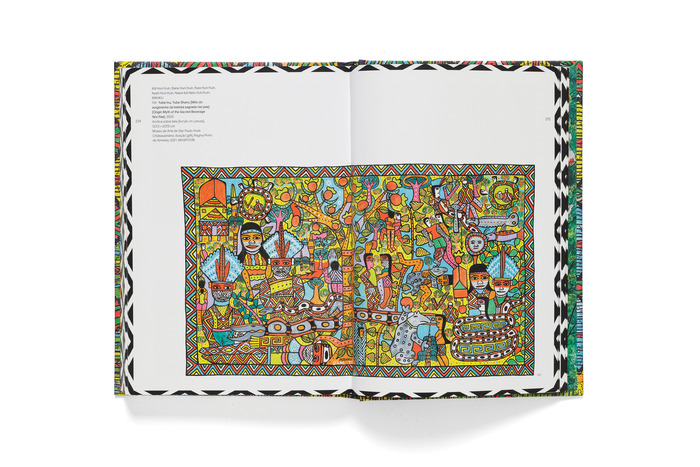 The bilingual book (Portuguese/English) also features transcriptions of Huni Kuin songs and myths, along with essays on the history and meaning of the collective’s practices and representations, complemented by reproductions of much of their visual production.
