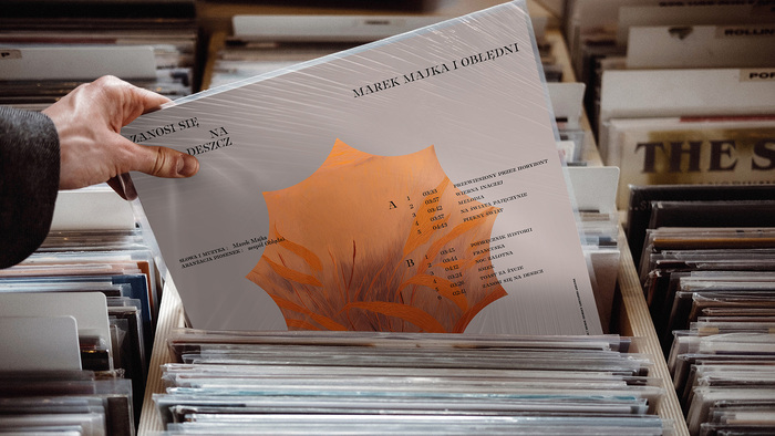 A key visual component is typography. The chosen font—Bomboniere, designed by Michał Jarociński (Capitalics)—features a delicate, ornamental quality that reinforces the album’s nostalgic tone.