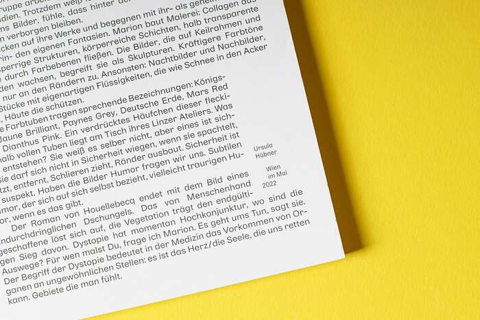 The catalog for Austrian painter Marion Reisinger uses the typeface Delphia to structure text with clarity and precision – Delphia’s wide proportions and clear forms support a calm and readable layout. Short blocks of text are arranged in a flexible grid that adapts to the artworks on each spread. The typography remains understated, allowing the paintings to take focus, while maintaining a consistent visual rhythm throughout the publication.