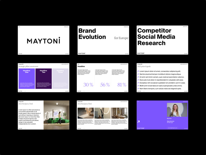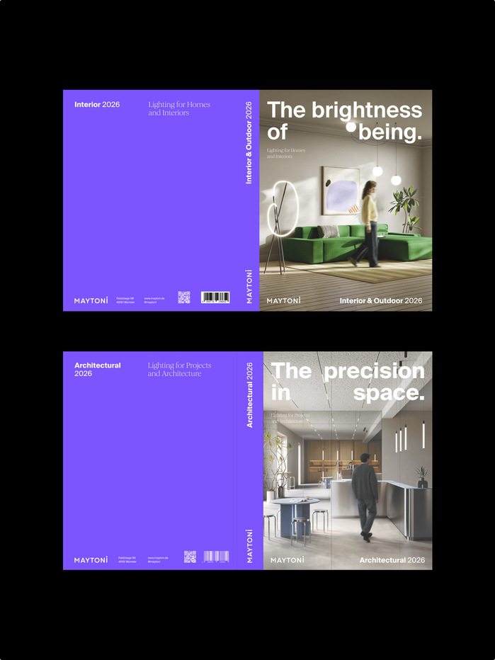 Freelance support during the strategic realignment and rebranding process of Maytoni, an interior lighting brand based in Münster. Building on the redefined brand essence and the tagline “Shaping Spaces and Stories,” we developed an evolution of the corporate design. Core elements include a new typographic identity, a revised color system for categorizing lamp categories, and a reimagined visual language. In addition to the graphic implementation of various touchpoints across areas such as traditional business stationery, editorial design, retail, and social media, the collaboration also included consulting on topics such as product development, collaborations, content production, and packaging.