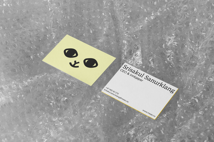 A friendly identity for utility design objects tailored to homes with cats in them. Meao is a family-owned company with curated cat products from Oslo. The identity uses STK Bureau Sans and STK Bureau Serif by Smuss Type Kiosk.