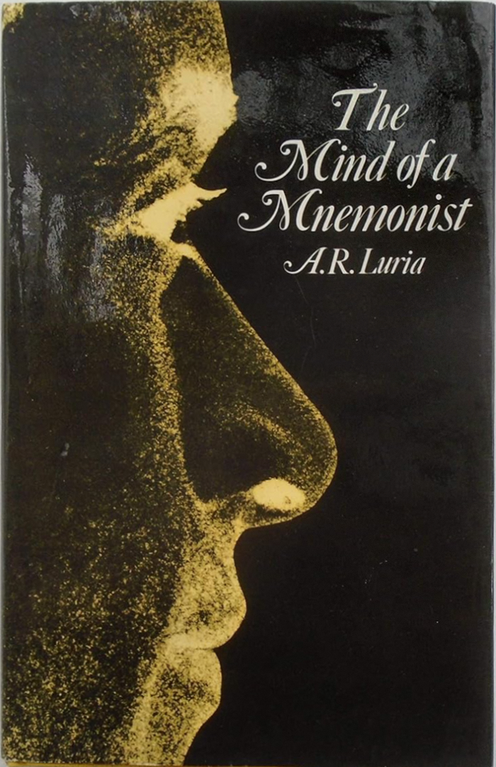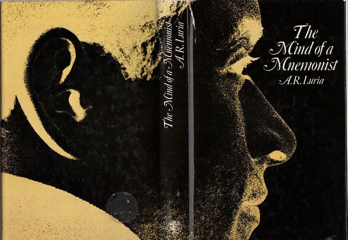 The first British edition of A.R. Luria’s The Mind of the Mnemonist was published by Jonathan Cape in 1969. Mon Mohan’s jacket design with wrap-around art uses Caslon 540 Italic with swash caps, highlighting the alliteration in the title.