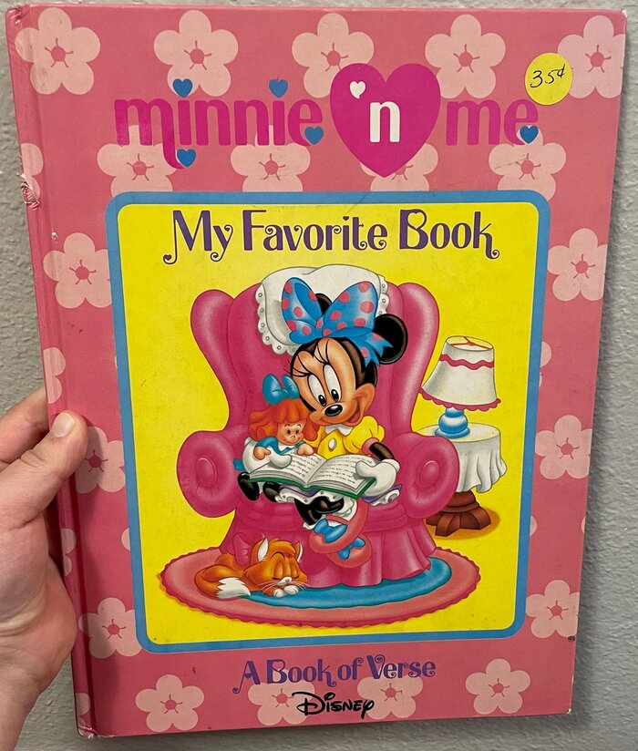There was a wide variety of Minnie ’n Me products, including dolls and other toys, trading cards and stationary, perfume and jewelry, luggage, bedding and more. The logo used for this brand is based on Sweetheart, and some of the merchandise, mostly books, actually uses the typeface.