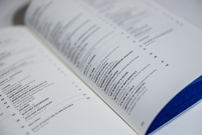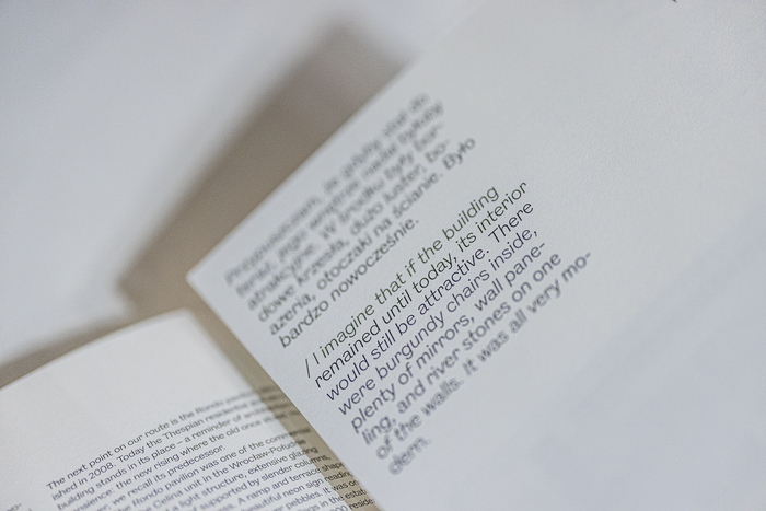 From a typographic perspective, the publication reflects the same attention to detail and contextual sensitivity that shaped the architecture it documents. Titles are set in Patyk, a new typeface from Threedotstype, developed with an awareness of historical form and contemporary typographic practice. The body text is composed in RL Sezon, designed by Radek Łukasiewicz, another typeface rooted in Wrocław’s design culture. Together they form a typographic dialogue between local history, editorial design, and contemporary type design.
