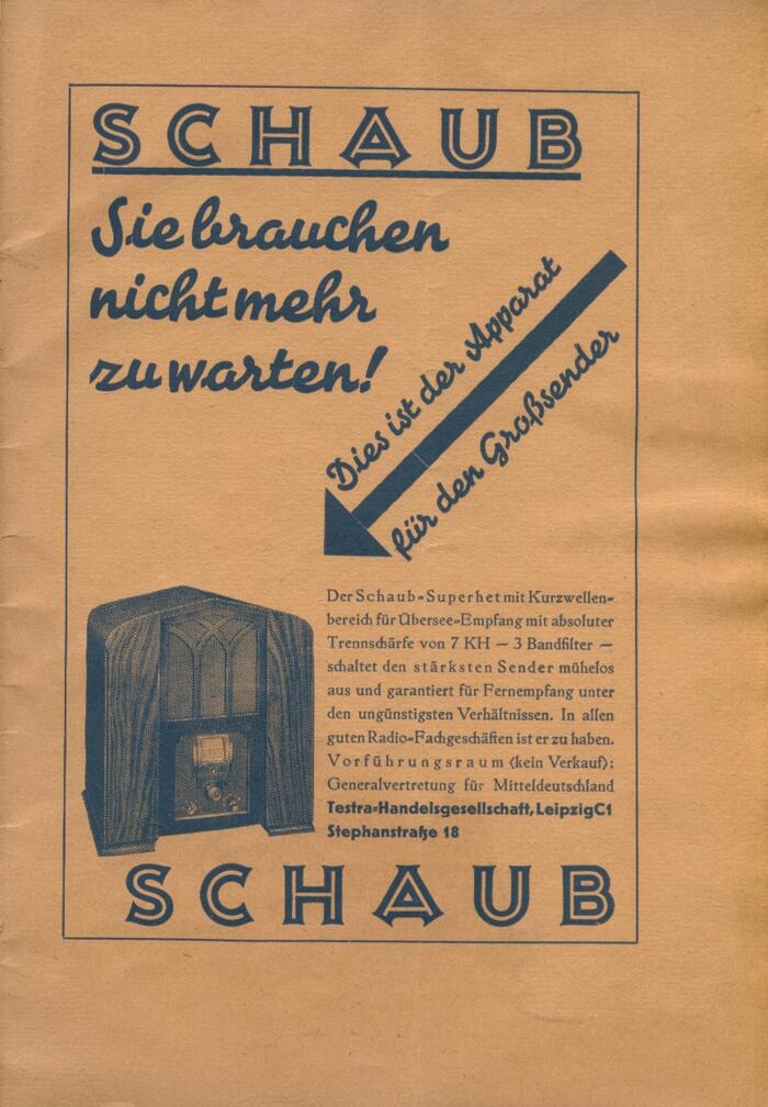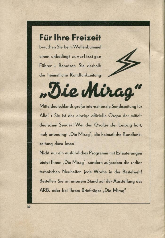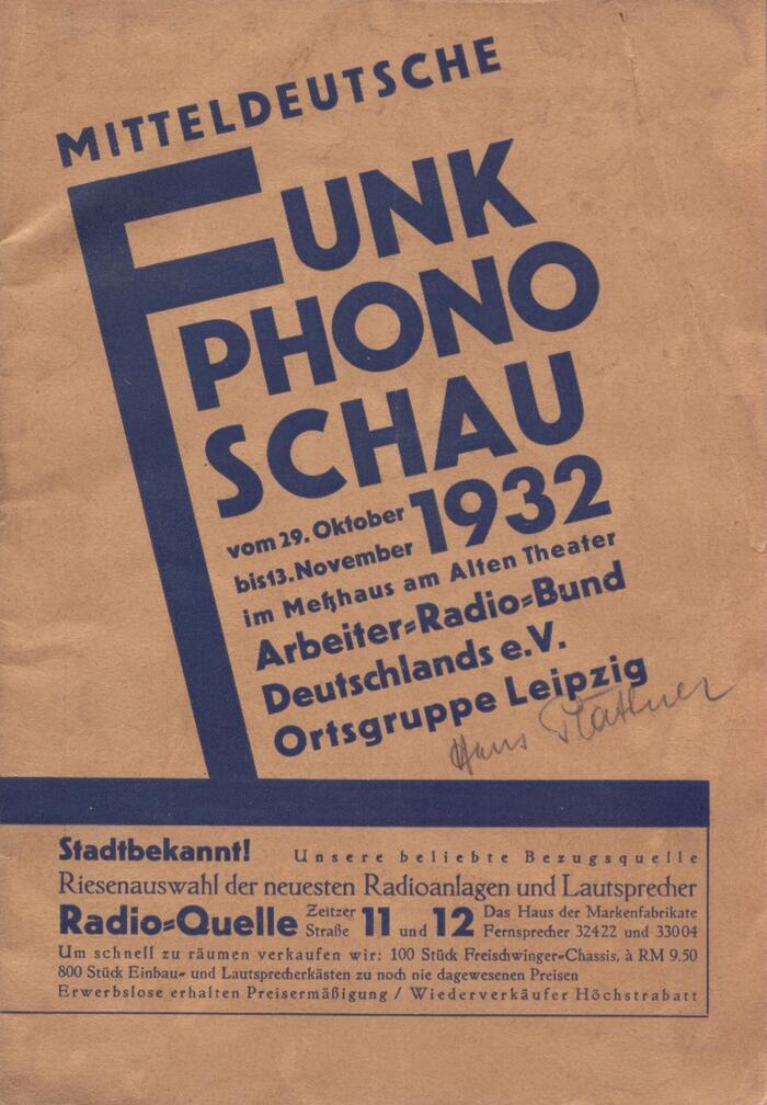 The “Central German Radio and Phono Show” was the third major radio exhibition by the Leipzig chapter of the Arbeiter-Radio-Bund Deutschlands (ARB, “Workers’ Radio Federation of Germany”). In the foreword, the organizers write (translated):