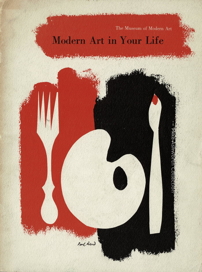 The stylish cover, showing a dining fork, an artist’s palette board as a plate, and a paint brush as a knife, is by noted American designer and art director Paul Rand (1894–1996) whose work included several iconic logotypes and symbols for companies including IBM and Westinghouse.